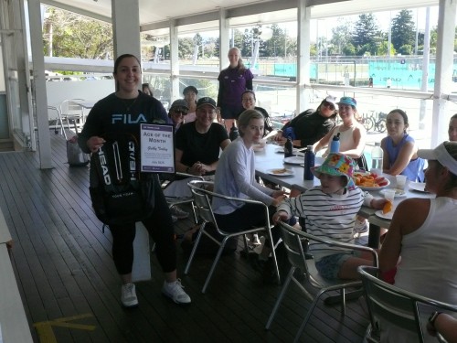 The July Ace of the Month is Gabby Torbey. Vice-President, Rebecca Warner, presented the award to Gabby at Ladies’ Sunday Morning Social Tennis on 13 July.